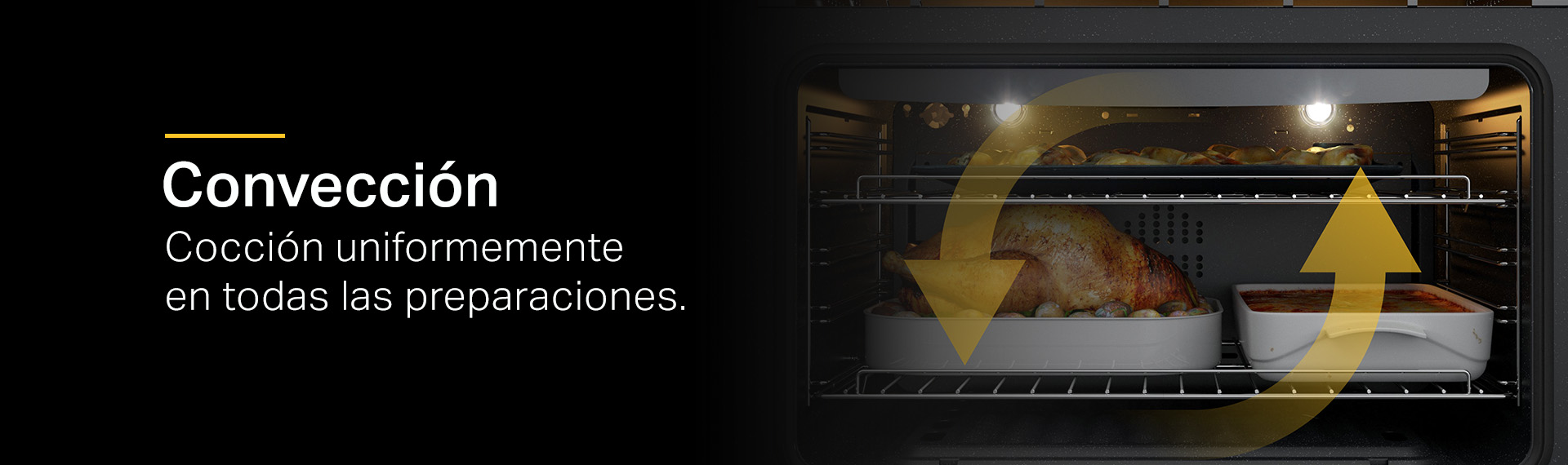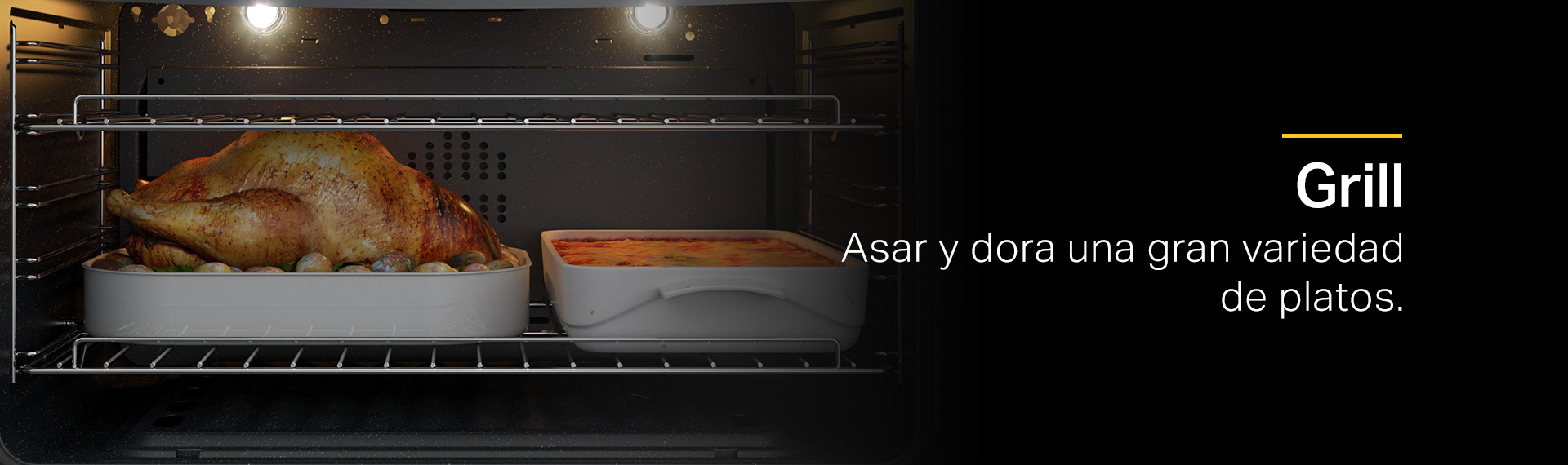 Puerta acabado espejo Exclusivo doble cristal en el horno que impide que se sobrecaliente su exterior y concentra el calor en la parte interna.