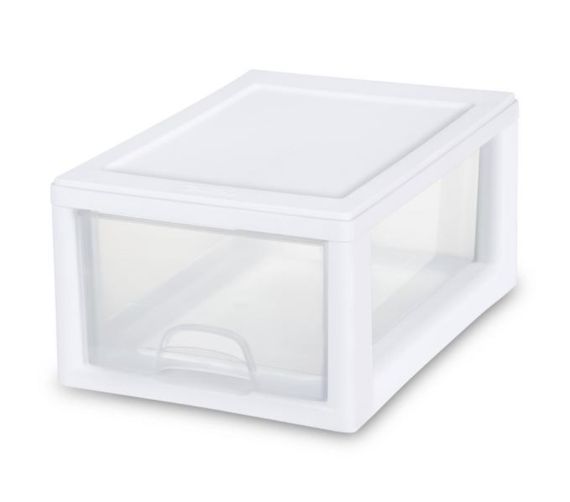 • ¿Tus espacios habitables necesitan orden? ¡Mezcla y combina los tres tamaños de cajones apilables para crear un sistema de almacenamiento personalizado y darle a todo un lugar para almacenar! Los cajones de armario apilables de 6 cuartos de Sterilite ayudan a organizar armarios y áreas de estar de forma sencilla. Los cajones se apilan cuidadosamente uno encima del otro creando torres de almacenamiento y ofreciendo flexibilidad para expandirse según sea necesario. Organizar, clasificar y almacenar todo; desde zapatos y accesorios hasta artículos de salud y belleza, joyas, materiales para manualidades y más. Estos cajones están diseñados para funcionar juntos en una variedad de configuraciones. Las dimensiones totales ensambladas de este artículo son 12 7/8' de profundidad x 8 7/8' de ancho x 6' de alto.